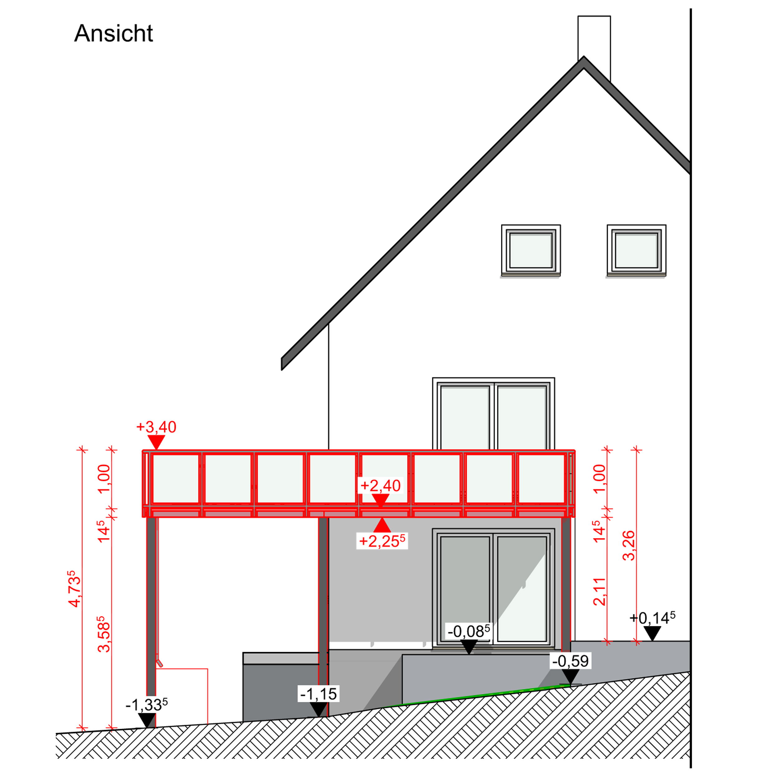Das Ist die Vorderansicht zur Errichtung einer Balkonanlage
