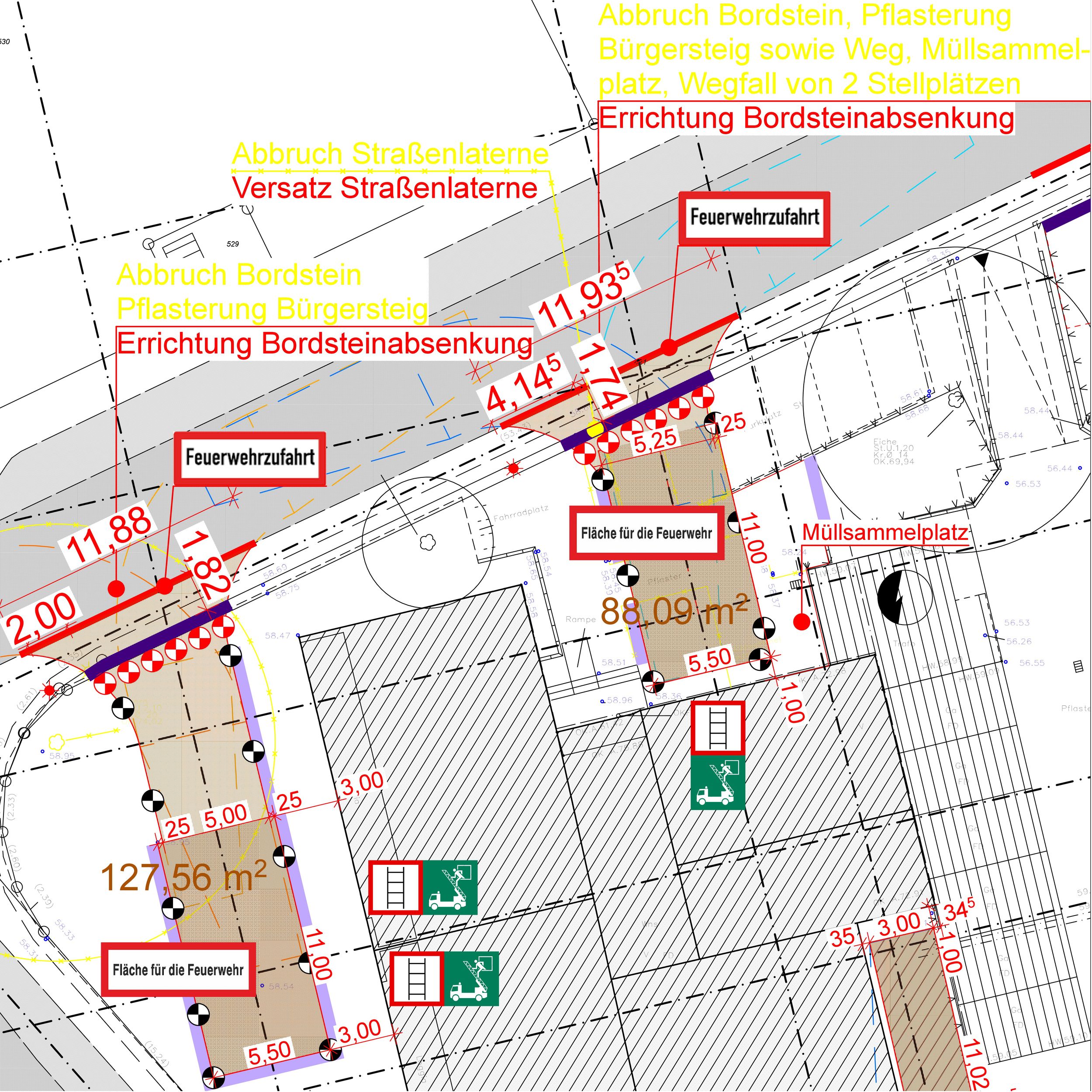 Errichtung Din-KonformerFeuerwehrzufahrten und Aufstellungsflächen inklusive Bordsteinabsenkungen